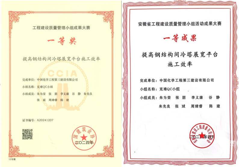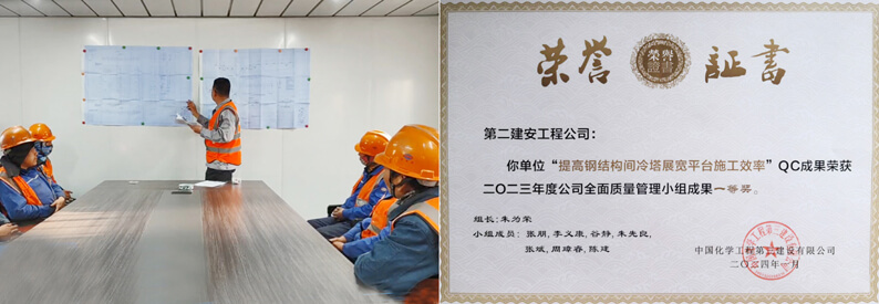 正是基于这样的认知,我们发起了《提高钢结构间冷塔展宽平台施工效率》QC小组活动。当时项目面临双重使命:既要满足业主总体进度要求,展示企业“服务不打折扣”的实力;又要突破间冷塔展宽平台安装这一关键工序的工期瓶颈——传统施工方法看似无懈可击,但项目进程倒逼我们必须寻求突破。在公司众多成功案例的启发下,“克难”QC小组成立了。“克难”二字,取“攻坚克难”之魂,既直白传递了直面难题的决心,也彰显了小组高效务实的工作作风。