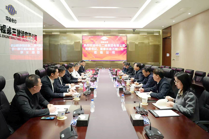 11月4日,中国化学工程第三建设有限公司党委书记、董事长占德庆在公司总部会见中化二建集团有限公司党委书记、董事长徐万明一行,双方就深化同业合作、共享发展机遇、协同推进高质量发展等进行了深入交流。