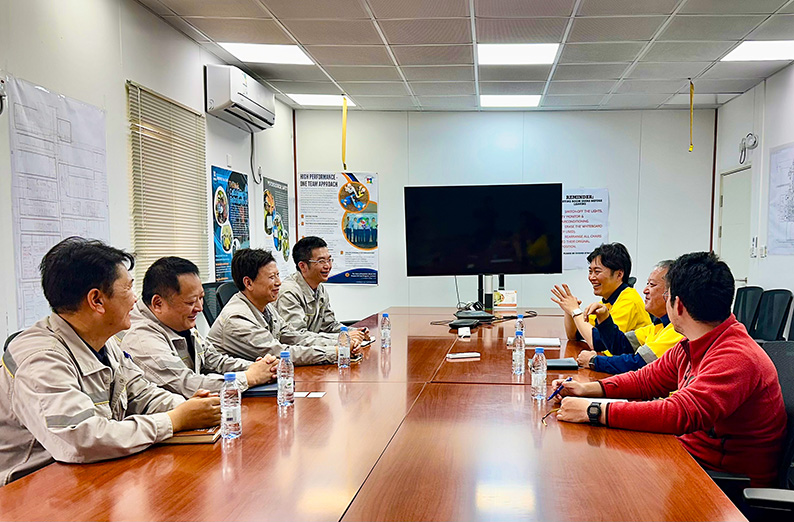 梁华金深入施工一线,实地查看工程进度、安全质量、物资保障及文明施工情况,听取分公司及项目负责人工作汇报,对分公司在市场开拓、项目管控、实体化建设等方面取得的成效予以肯定。他指出,祖鲁夫项目与磷矿肥项目是公司海外重点“星级标准化工地”创建示范项目及中东地区的标志性工程,要继续保持良好发展态势,持续提升整体执行效能,形成可复制、可推广的海外项目管理经验,为公司海外业务高质量发展提供有力支撑。