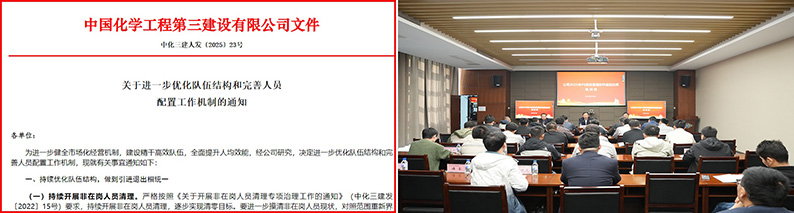 在中国化学工程党委的关心、指导和支持下,中国化学工程第三建设有限公司持续深化干部人才队伍建设,为站稳“双百亿”台阶奠定了坚实的干部人才基础。今年4月至5月,中国化学工程党委对公司党委开展了常规巡视和选人用人专项检查,为公司干部队伍建设把脉问诊、精准开方。公司党委坚持刀刃向内、动真碰硬,聚焦反馈问题逐项制定整改措施,明确时限、压实责任,确保条条有整改。