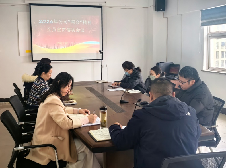 召开全体会议,传达贯彻公司“两会”精神。会议强调,要以“十五五”规划为统领,按照“四新提升年”工作部署,聚焦攻坚“六个着力”,坚持实干争先,统筹推进年度工作;要加大市场开发力度,扎实做好年后复工复产规划,全力以赴打好2026年开局之战;要以高质量党建引领保障企业高质量发展,确保“两会”精神落地见效,为“十五五”发展开好局、起好步提供坚实支撑。
