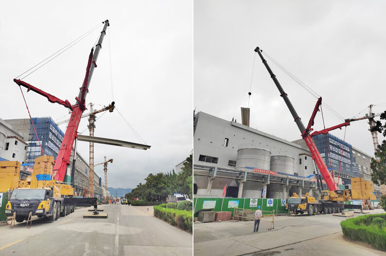 该项目造纸车间占地1.35万平方米、建筑面积1.85万平方米,主体三层。自2025年3月12日开工以来,项目团队克服高温雨季等不利因素,攻坚克难保证项目平稳运行。此次屋顶吊装采用650吨汽车吊将76块单重27吨、长24米的双T板精准吊装至25米高空,历时5天完成屋顶封闭。为使吊装作业保质保量完成,项目部贯彻落实公司以市场化运行机制全面推进项目管控一体化要求,在监理单位以及建设单位的支持下,顺利完成项目主体结构封顶任务,为下一步安装施工打下良好的基础。