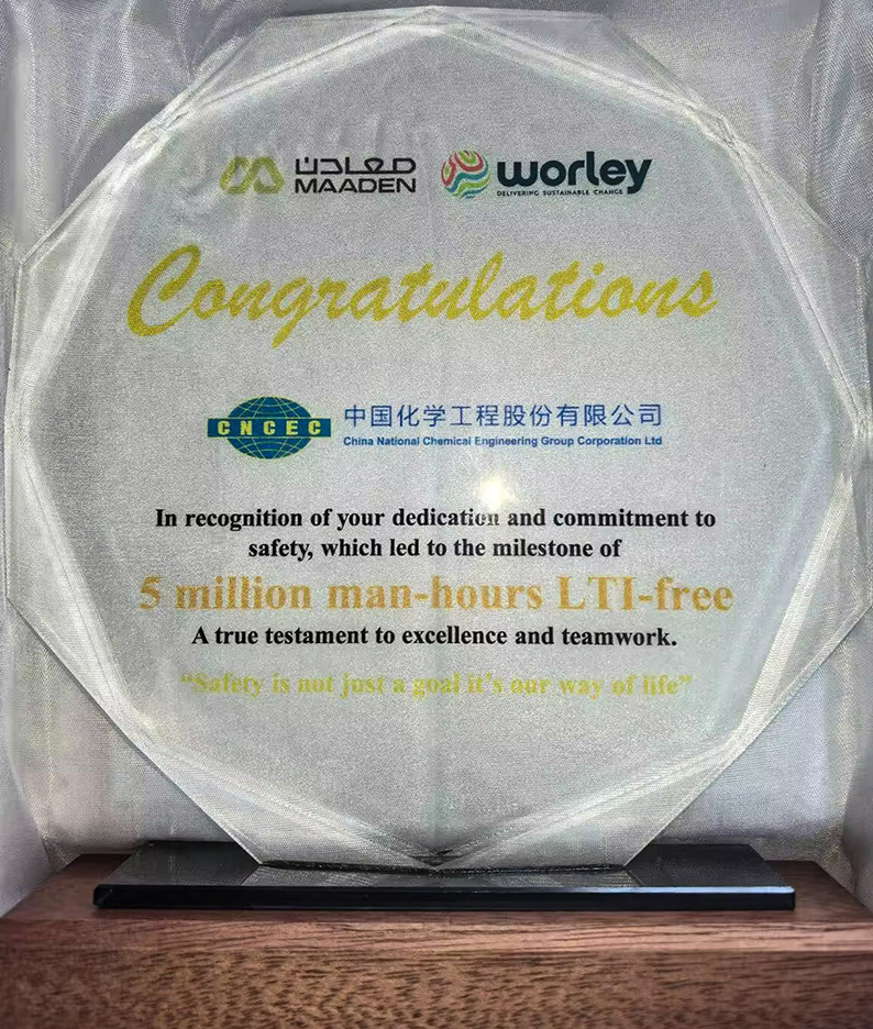 近日,中国化学工程第三建设有限公司沙特分公司承建的沙特矿业公司拉斯海尔磷矿肥项目举行500万安全工时庆典。业主方代表、管理公司团队及参建单位代表共同见证这一里程碑时刻。