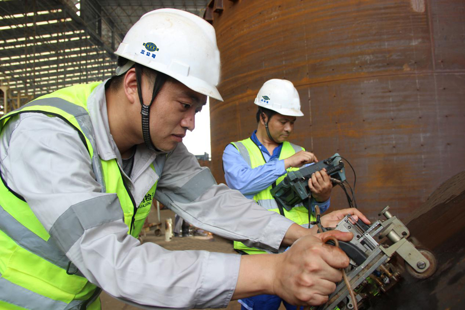 正在进行压力容器无损检测